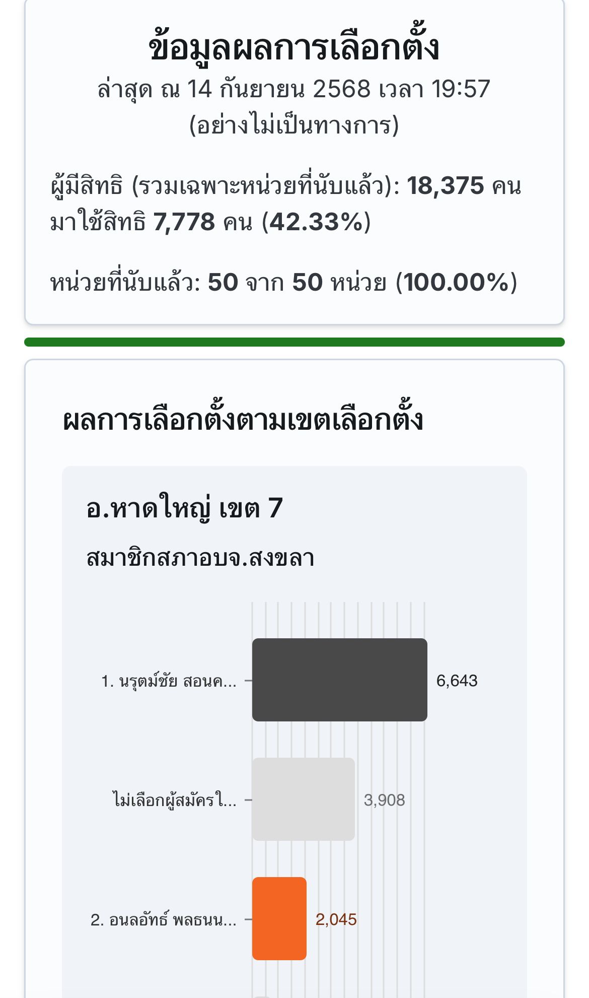 ที่มา – ผลเลือกตั้งซ่อม ส.อบจ.สงขลา “นรุตม์ชัย” คะแนนนำ “อนลอัทธ์” จากพรรคประชาชน