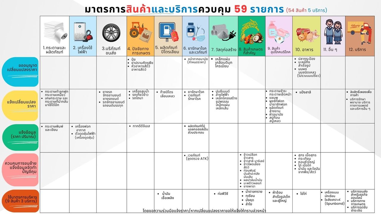 ที่ประชุมคณะกรรมการกลางว่าด้วยราคาสินค้าและบริการ (กกร.) เมื่อ 25 มีนาคม 2569 มีมติเพิ่มสินค้าและบริการในบัญชีควบคุมอีก 7 รายการ หลังรับฟังความเห็นทุกฝ่ายแล้ว โดยมีความจำเป็นเร่งด่วน ทำให้ยอดรวมเพิ่มจาก 59 เป็น 66 รายการ คาดเสนอ ครม. 31 มีนาคม 2569 สินค้าใหม่ ได้แก่:
