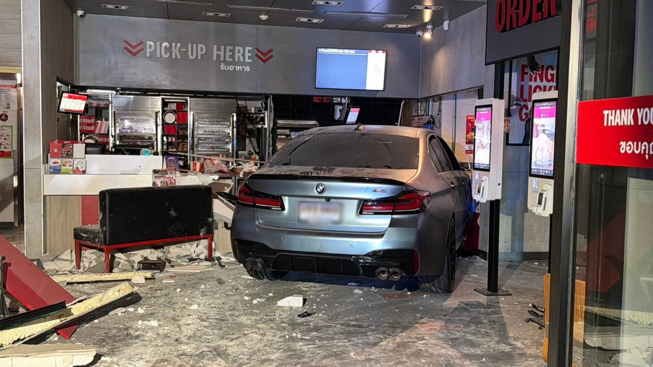 รถเก๋งบีเอ็มฯ พุ่งชนร้านไก่ทอดชื่อดังในปั๊มน้ำมัน ซอยสุขุมวิท 62 เจ็บ 6 ราย