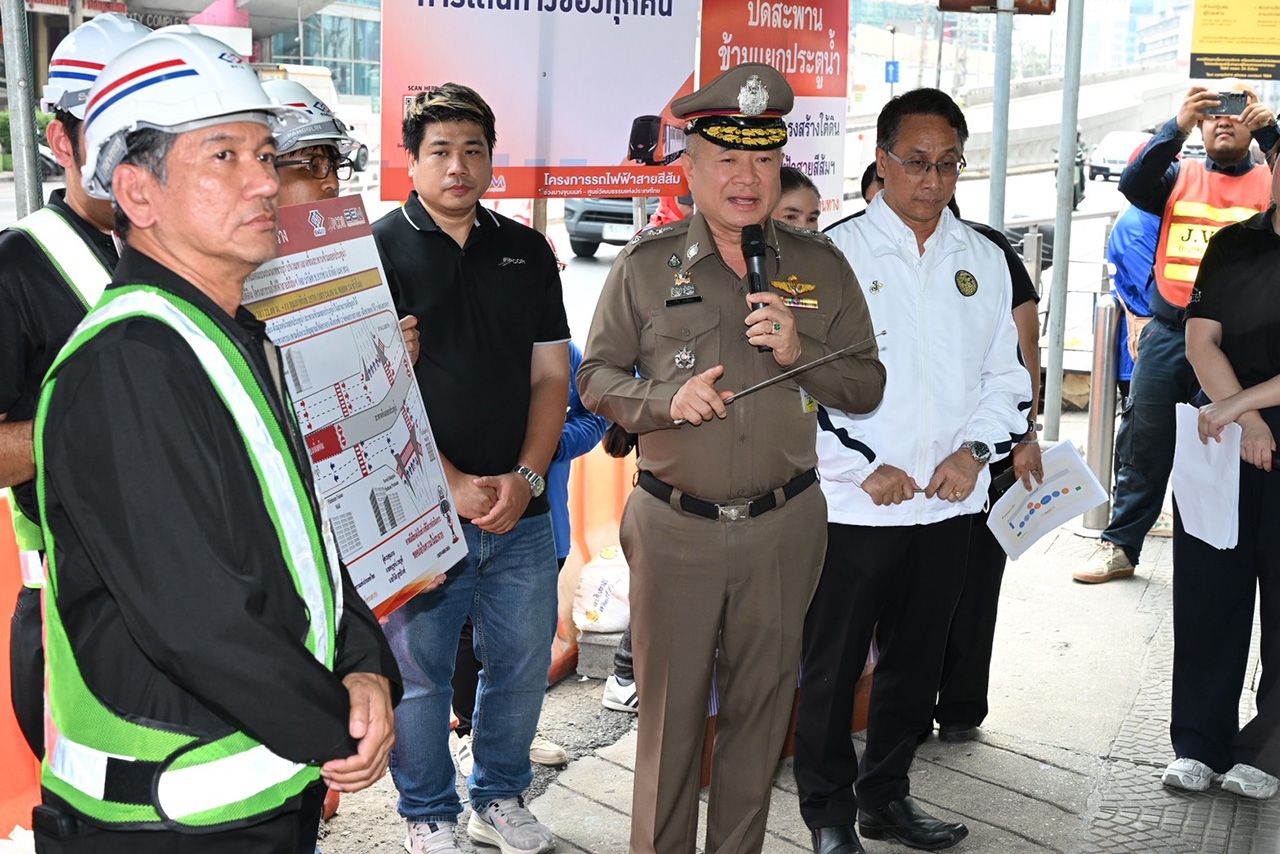 การแถลงข่าวเมื่อวันที่ 21 เมษายน 2567 โดย พล.ต.ต. ธวัช วงศ์สง่า รอง ผบช.น. ร่วมกับนายกิตติกร ตันเปาว์ รองผู้ว่าการรฟม. และนายสุรพงษ์ เมี้ยนมิตร รองผู้อำนวยการสนข. ได้นำสื่อมวลชนลงพื้นที่ตรวจสอบความพร้อมบริเวณทางเดินลอยฟ้า (Sky Walk) หน้าศูนย์การค้าแพลทินั่ม แฟชั่น มอลล์ เพื่อให้ทุกคนเห็นภาพชัดๆ ก่อนเริ่มปิดจริง