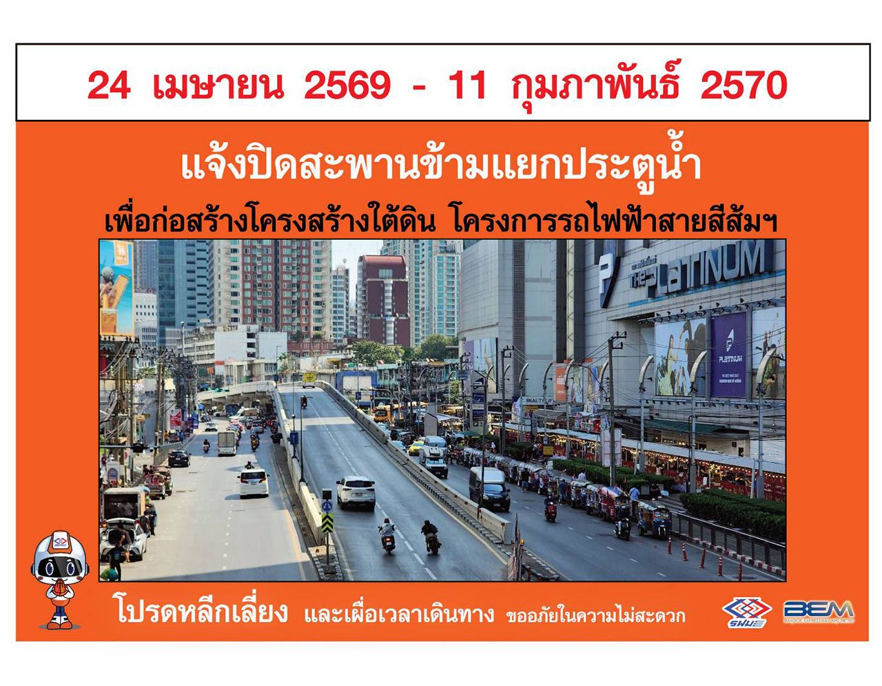 ที่มา – รฟม.แจ้งปิดสะพานข้ามแยกประตูน้ำ เริ่ม 24 เม.ย. เวลา 22.00 น. ถึงปี 70 แนะเส้นทางเลี่ยง