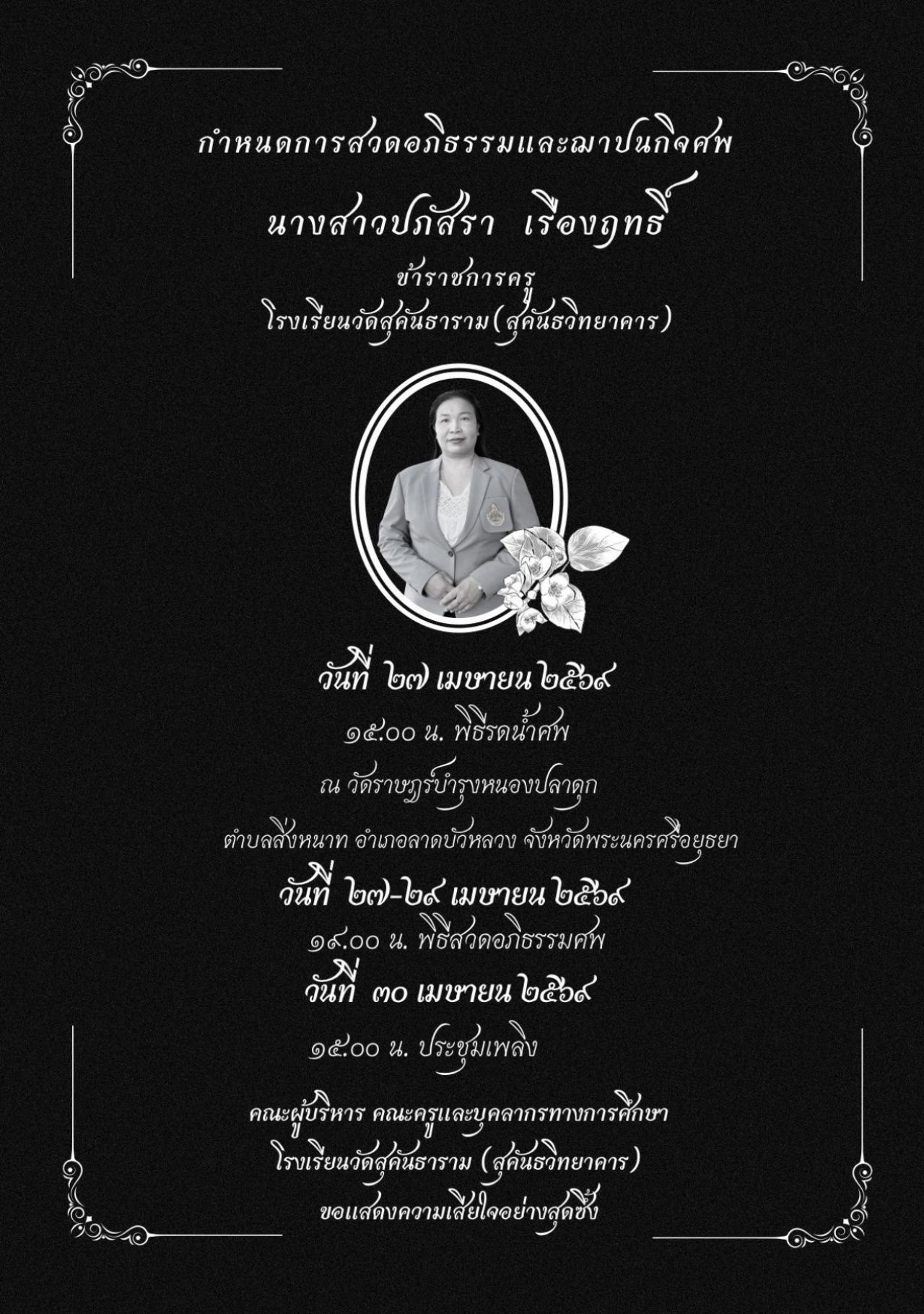 โซเชียลแห่อาลัยครูปภัสรา สพฐ.-โรงเรียนโพสต์แสดงความเสียใจ