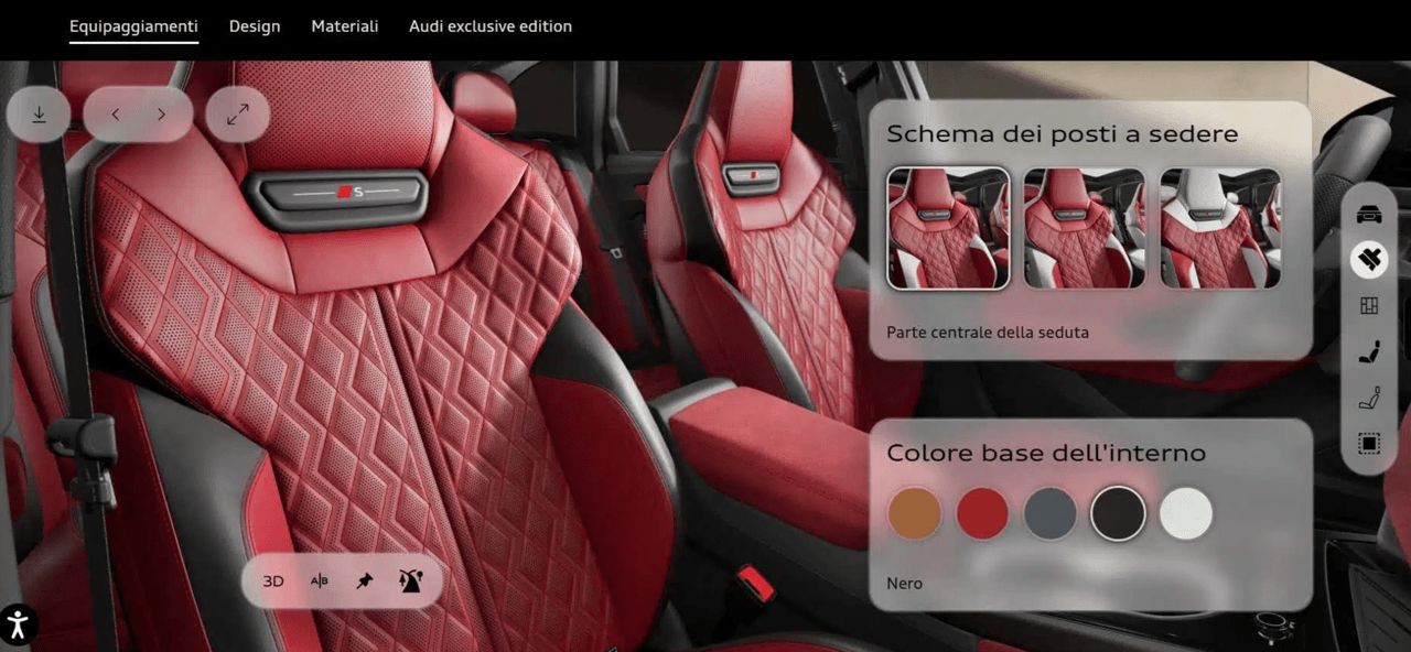ภาพ 3 มิติความละเอียดสูงที่ละเอียดคมชัด ผสมผสานสีภายนอกและภายในที่หลากหลาย แสดงให้เห็นถึงตัวเลือกการปรับแต่งที่หลากหลาย ช่วยให้ลูกค้าได้สัมผัสประสบการณ์ของรถยนต์คันจริง รถรุ่นปรับแต่งพิเศษเฉพาะของ Audi มีจำหน่ายทางออนไลน์และที่สตูดิโอใน Neckarsulm และ Ingolstadt