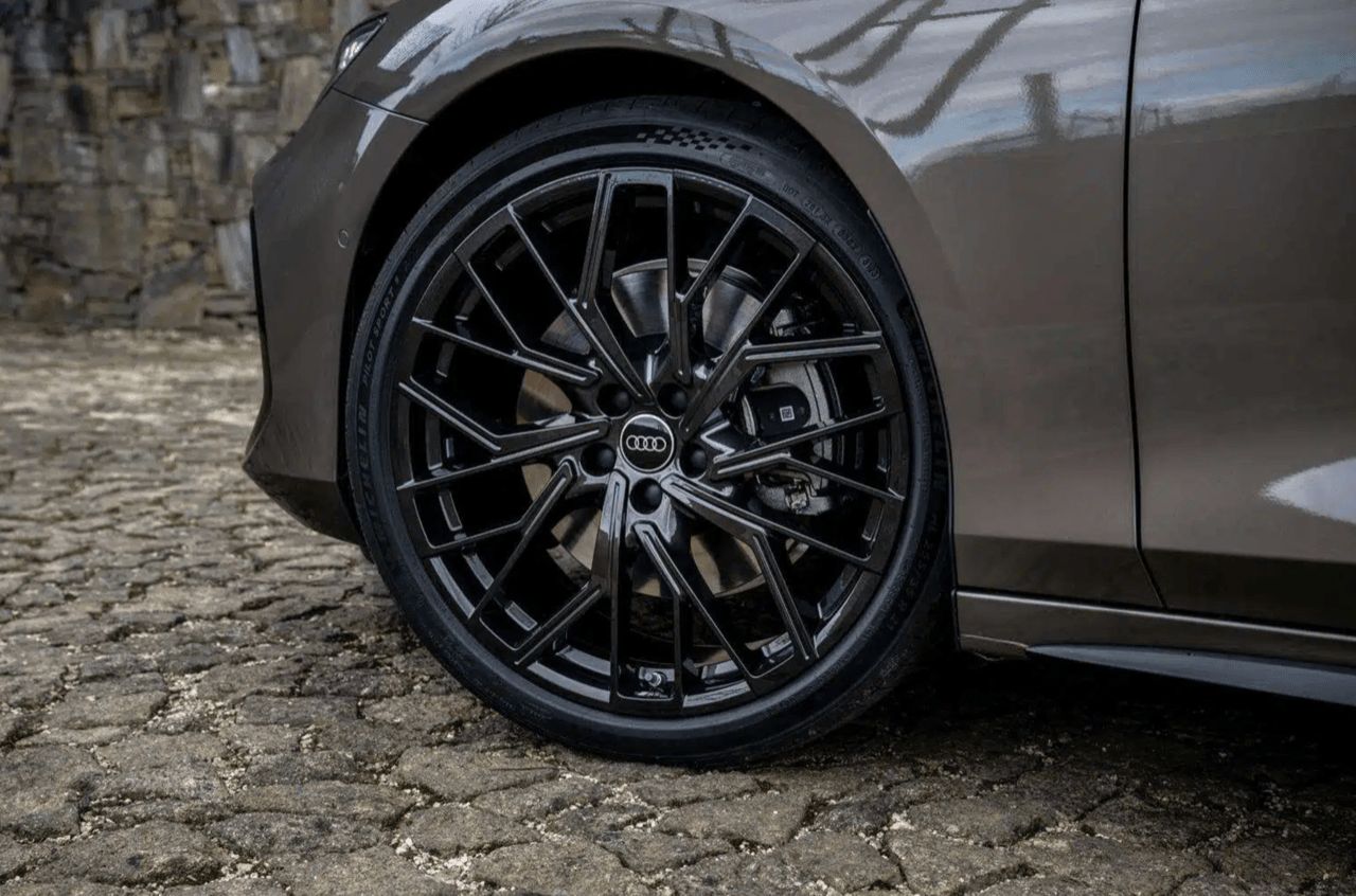 เพื่อให้เข้ากับสีตัวถังที่เลือกสรร Audi exclusive มีล้อโปรเกรสซีฟให้เลือกหลากหลายสี ล้อที่โดดเด่นที่สุดคือล้อขนาด 21 นิ้ว หลายก้าน จาก Audi Sport ล้อสีดำเมทัลลิกขัดเงา เป็นล้อเดียวในรุ่นที่มีดีไซน์สามสี จับคู่กับสีดำเมทัลลิก สีทองนีโอไดเมียมด้าน และสีเงินขัดเงา